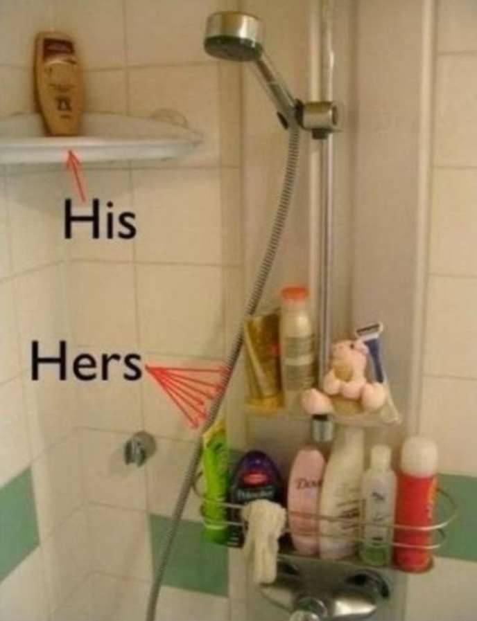 Does this, I ask, sound like equality to you? I mean, I know my wife needs room for her stuff, but seriously? There isn’t even any room for my hairbrush!