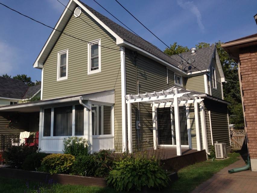 Fast forward to March of 2011. The exterior of our house was finished, finally the way we liked it….except for one thing. We have a front deck which is on the right side that just didn’t look right. We had no roof over it, and really didn’t want to go through a whole engineering thing because to roof it, we would have to change a bunch of things. But while browsing through the internet, there it was! A pergola!! I now knew the name of what it was I had seen in Germany, and I had the perfect place to put one!! After running outside in the snow with a tape measure, I realized that the one I saw online was PERFECT. It’s like they had made it for me.